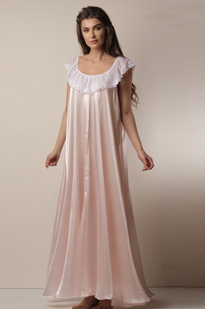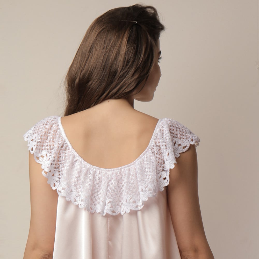 وصف لحجم القطع :طول وعرض: قميص طويل بدون أكمام ، بطول 60 انش - وعرض حسب المقاس ، اكتاف منسدلة مزينة بالدانتيل الفاخر .
