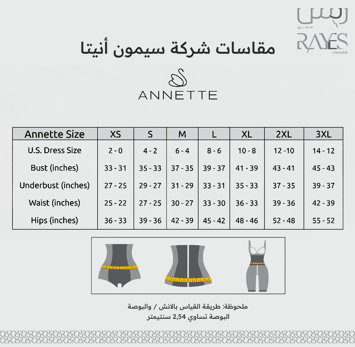 ملحوظة: ( يجب ان تؤخذ بالمقاس أو اكبر درجه وهذا لقوة المشد )